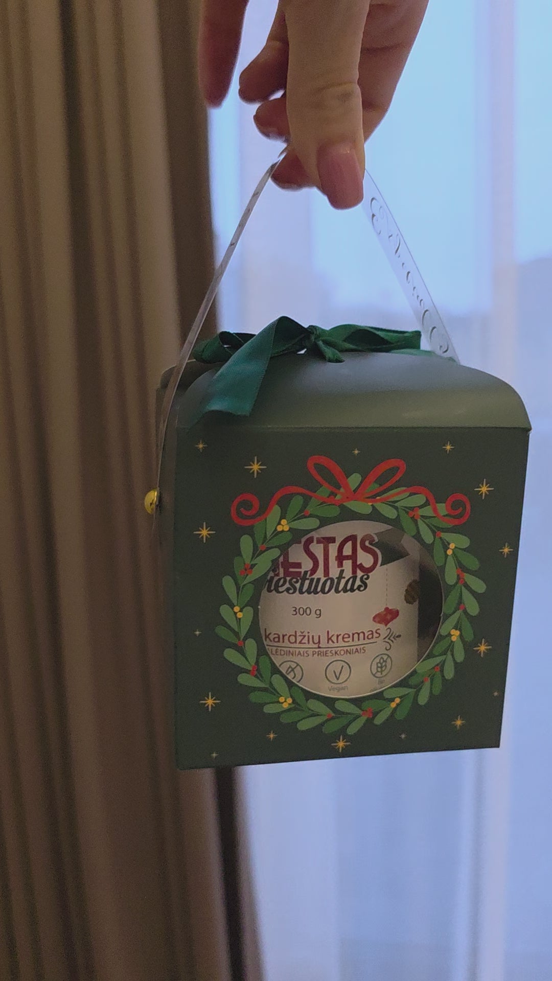 Dovanų dėžutė, žalios spalvos. Tinkanti Sviesto sviestuoto 300g stiklainiui