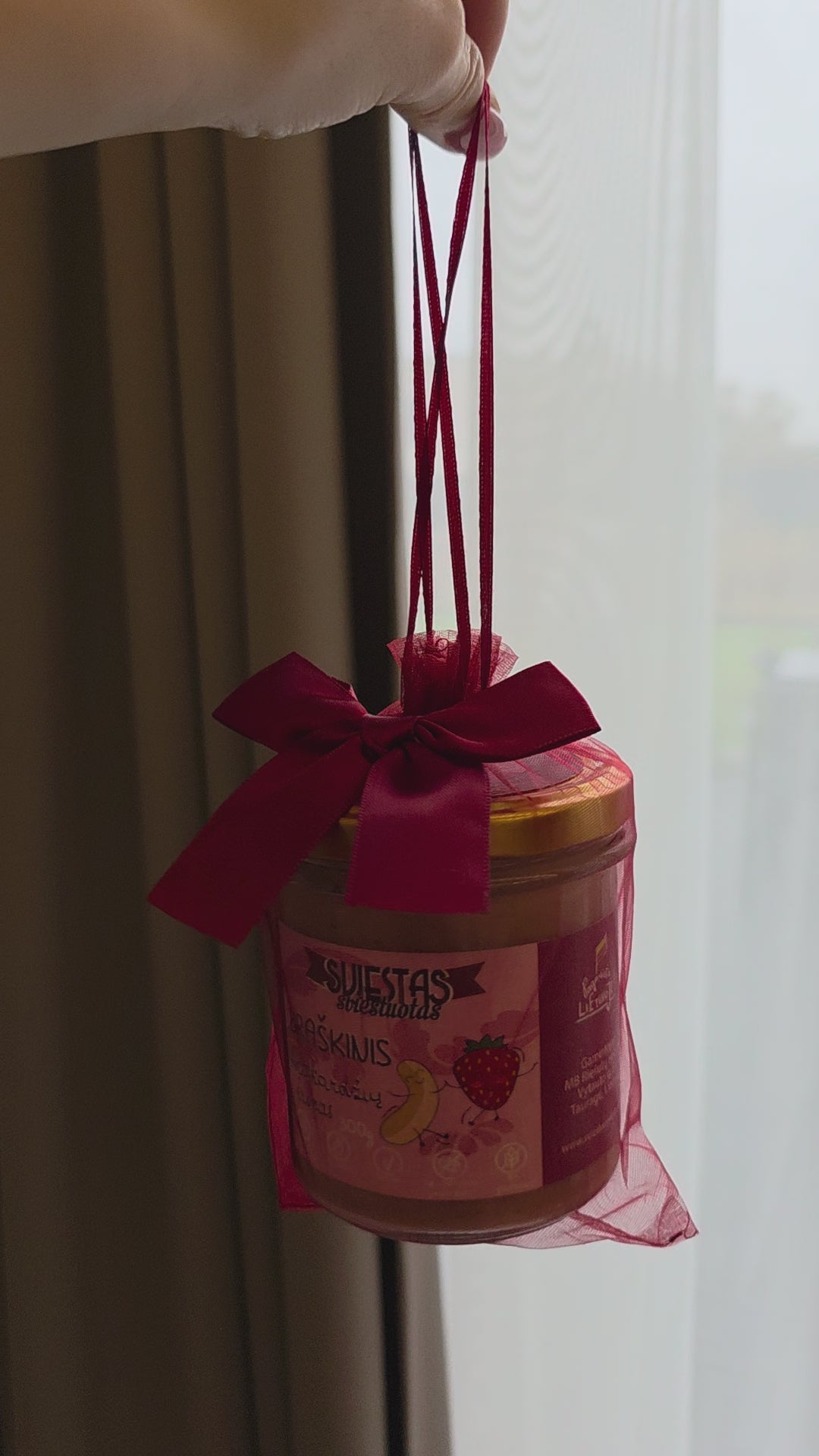 Dovanų maišelis, raudonos spalvos. Tinkantis Sviesto sviestuoto 300g ir 180g stiklainiui